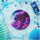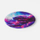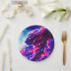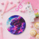 A powerful cosmic leopard emerging from vibrant clouds of neon pink, electric blue, and deep violet.