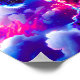 A powerful cosmic leopard emerging from vibrant clouds of neon pink, electric blue, and deep violet.
