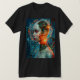 Upgrade your everyday wardrobe with an uncompromising, high-tech fashion statement. This premium graphic t-shirt features a mind-blowing, highly detailed illustration of a futuristic female cyborg. The striking design showcases exposed biomechanical wiring, brilliant neon orange sparks, and floating cyan holographic interfaces, making it the ultimate wearable art for fans of cyberpunk culture, modern sci-fi movies, and complex video games.