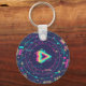 A vibrant futuristic abstract design featuring a digital play button surrounded by neon tech elements.