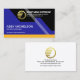 Cover features a futuristic geometric design. Over at the top in the black geometric layer, is a gold global logo you can use alongside its business name and contact details. Southwards to the blue layer lie your prestigious name, job title and a slogan caption to publicise your services.