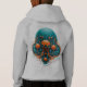 The "Futuristic Meduza" is a digital illustration that presents a whimsical creature-character with a sleek, cybernetic features combined with organic shapes. Rendered in a vibrant aqua-orange sticker style, the creature boasts flowing, luminescent tentacles that shimmer with a blend of neon hues, set against a stark cyber mood.
