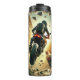 Futuristic Motorcycle With LED Lights Displaying Thermal Tumbler