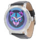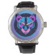 Digital artwork illustrating a neon blue and pink panther face in a geometric art style, set against a dark circular backdrop. The design creates a futuristic and striking visual appeal.