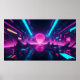 Futuristic Neon Vaporwave City Horizon Synthwave Poster