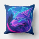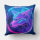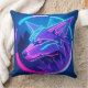 Futuristic Neon Wolf Face in Geometric Art Cushion