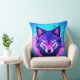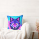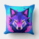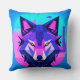 Futuristic Neon Wolf Face in Geometric Art Cushion