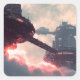 Massive futuristic structures float majestically above the clouds connected by bridges. The warm glow of sunrise adds a serene atmosphere.