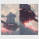 Futuristic platforms in the clouds at twilight wrapping paper