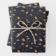 The design theme of this wrapping paper is outer space. In the pattern, you can see orange spaceships, violet ufos, sun, violet planets, and white stars with a black background. You can use this outer space wrapping paper to wrap any gifts with a futuristic style but still look cute...