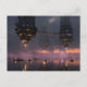 Futuristic towers floating above harbour postcard