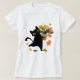 fuuny black Cat Leaf Fall Hello Autumn T-Shirt