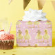 Cute fuzzy yellow duckling couple on a pastel pink and white polka dot pattern.