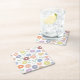 Fuzzy Flower Lg Pattern Pastels on White Square Paper Coaster