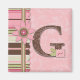 G monogram with stripe and floral prints with novelty flower and ribbon with girl tag.