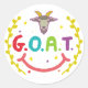 G.O.A.T design features the hand drawn word "G.O.A.T" within a trophy style, with a goat head at the top and a smile below. For Goats, the Greatest Of All Time.