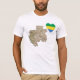 A heart shaped Gabonese flag is placed next to a relief map of Gabon on this distinctively patriotic t-shirt.