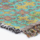 Vibrant blue and yellow patterns interweave in a symmetrical, kaleidoscopic design. The intricate details create a mesmerising effect reminiscent of a tapestry or mosaic.