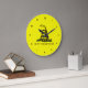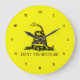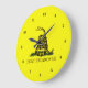 A nice small-scale wall clock . Runs on one battery and quite light. I got it for my husband to put down in his woodworking shop. We love the motto, live free or die, and at least now he can check out the time on this nice wall clock! We love this design and the yellow background is great.