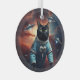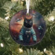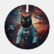 A captivating image of a black cat dressed as an astronaut, gazing confidently into the cosmos. Surrounded by flying saucers and a vibrant nebula, the cat embodies a sense of adventure and mystery.