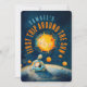 Launch into a universe of fun with our Galactic First Birthday Party Invitation! This invitation is a ticket to an interstellar adventure, featuring a joyful baby astronaut in a whimsical vehicle, orbiting around a beaming sun amidst a sky filled with planets and stars. The front side sets the scene with deep space blues and vibrant orange hues, inviting guests to Samuel's "First Trip Around the Sun." The back continues the celestial voyage with party details playfully set among the stars, ensuring your guests are ready for liftoff. This invitation is perfect for your little one's milestone celebration, promising a day filled with discovery, wonder, and cosmic joy.