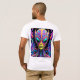 Image depicts an Alien from another world adorned in bright colours. All colours make contrast with the dark background. Customisable text and image.