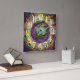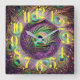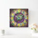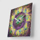 This purple, gold, green, and peacock feather design provides a burst of colour as an easy-to-read clock.