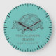 Latitude and longitude coordinates for The Galapagos Islands, a UNESCO World Historical site located in Ecuador. Wall clock features giant tortoise illustration on aqua background