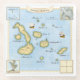 This pretty map of the Galapagos islands has little ships and dolphins in the sea and an ornate border with drawings of native wildlife. The Galapagos archipelago is a group of tectonic islands off the coast of Equador which is famous for its part in inspiring the theories of Charles Darwin.