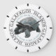 Galapagos Islands tortoise wall clock; a souvenir of this magnifient travel location. The Galapagos tortoise is the largest living species of tortoise and 10th-heaviest living reptile, reaching weights of over 880 lbs. and lengths of 5.9 feet. With life spans in the wild of over 100 years, it is one of the longest-lived vertebrates. A captive individual lived at least 170 years. The Galapagos Islands are one of the most exotic animal sanctuaries on earth where you can get up close and personal with wildlife.