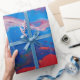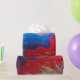 This colorful pattern, reminiscent of a galaxy, was created by the technique of acrylic pouring.