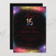 Elegant Sweet 16 invitation featuring a cosmic galaxy-inspired design with shimmering multicolor accents on a dark background. The modern typography and vibrant details create a stylish and unforgettable look for a milestone celebration. Customise for a personal touch!