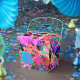 If colour energises you like it does me, then these favour boxes are for you. Covered with a digital graffiti that I designed, it has shades of coral, orange, lavender, purple, turquoise, midnight blue, white, yellow, lime green, pink, black and more. The layers of colours and varying opacity make for fun favour boxes.