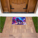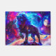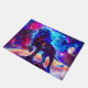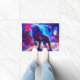 A majestic lion with a glowing blue mane, standing proudly against a backdrop of the galaxy, radiating power and cosmic elegance.