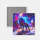 A majestic lion with a glowing blue mane, standing proudly against a backdrop of the galaxy, radiating power and cosmic elegance.