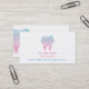 A unique business card for dentists! It features a molar tooth in a trendy polygon with a galaxy colour palette of blue, purple and pink. Perfect for female dentists! Personalise easily with your business details.