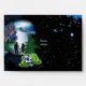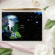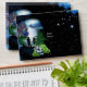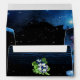 A magical, mystical, futuristic outer space -portal, fantasy stationary with blue, violet and white silk flower bouquet gift products for many celebrations to personalise.