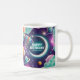 Galaxy-themed happy birthday crescent moon, stars coffee mug