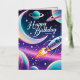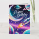 Galaxy-themed happy birthday crescent moon, stars foil greeting card