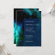 Galaxy wedding invitation in navy blue and emerald green. Can be personalised.
