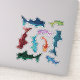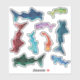 A bright, galaxy themed sticker set of whale sharks, including adult and adolescent sharks.