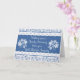A very pretty 'Get Well Soon' card for someone undergoing Gall Bladder surgery. The text is white on Indigo Blue and the card is decorated with a floral pattern in Blue on White, a faux lace edging and white lacy floral motifs, from a hand-drawn design by Judy Adamson.