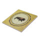 A galloping bison is painted on the skin side of a beaver pelt stretched on a willow hoop. The bison (Bison bison), the largest land mammal in North America, is considered a keystone species: they once roamed the continent in great herds, and their grazing pressure helped shape the ecology of the Great Plains. Two subspecies or ecotypes have been described: the plains bison (Bison bison bison), smaller in size and with a more rounded hump, and the wood bison (Bison bison athabascae) – the larger of the two and having a taller, square hump. The bison is a relative newcomer to North America, having originated in Eurasia and migrated over the Bering Strait About 10,000 years ago it replaced the steppe bison (Bison priscus), a previous immigrant that was much larger. It is thought that the steppe bison became extinct due to a changing ecosystem and hunting pressure following the development of the Clovis point and related technology, and improved hunting skills. During this same period, other megafauna vanished and were replaced to some degree by immigrant Eurasian animals that were better adapted to predatory humans. The extant bison, technically a dwarf form, was one of these animals. There were once an estimated 20-30 million bison, also referred to as buffalo, roaming North America. Their range once roughly comprised a triangle between the Great Bear Lake in Canada's far northwest, south to the Mexican states of Durango and Nuevo León, and east along the western boundary of the Appalachian Mountains. The first thoroughfares of North America, except for the time-obliterated paths of mastodon or musko, were the traces made by bison and deer in seasonal migration and between feeding grounds and salt licks. Many of these routes, hammered by countless hoofs instinctively following watersheds and the crests of ridges in avoidance of lower places' summer muck and winter snowdrifts, were followed by Native Americans and were invaluable to explorers.. The term "buffalo" may be considered a misnomer for this animal, as it is only distantly related to either of the two "true buffalo," the Asian water buffalo and the African buffalo. However, "bison" is a Greek word meaning ox-like animal, while "buffalo" originated with the French fur trappers who called these massive beasts bœufs, meaning ox or bullock – so both names, "bison" and "buffalo," have a similar meaning. In reference to this animal, the term "buffalo," which dates to 1635, has a much longer history than the term "bison," which was first recorded in 1774.The American bison is more closely related to the wisent or European bison. Unregulated shooting of bison, which culminated in mass slaughters during the 1870s, reduced the population to 1,091 in 1889. Today, approximately 500,000 bison live across North America. Most are not pure bison but rather have been cross-bred with cattle in the past and are raised as livestock on ranches. Fewer than 30,000 bison are in conservation herds, and fewer than 5,000 are free-ranging and disease-free. Today bison are ecologically extinct throughout most of their historic range, except for a few national parks and other small wildlife areas. Yellowstone National Park has the largest population of free-roaming plains bison (about 4,000), and Wood Buffalo National Park has the largest population of free-roaming wood bison (about 10,000). A bison has a shaggy, long, dark brown winter coat, and a lighter weight, lighter brown summer coat. The winter coat is so thick and well insulated that snow can cover its backs without melting. Male bison are slightly larger than females. Plains bison typically weigh from 700 to 2,200 lbs. The heaviest wild bull ever recorded weighed 2,800 lbs. When raised in captivity and farmed for meat, the bison can grow unnaturally heavy and the largest semi-domestic bison weighed 3,800 lbs. The heads and forequarters are massive, and both sexes have short, curved horns that can grow up to 2 feet long, which they use in fighting for status within the herd and for defence. Bison are herbivores, grazing on the grasses and sedges of the North American prairies. Their daily schedule involves two-hour periods of grazing, resting and cud chewing, then moving to a new location to graze again. This regular motion ensures that bison seldom overgraze an area. Bison often rub and roll on the ground creating shallow, saucer-like depressions called wallows. Bison roll in wallow, wet or dry, covering themselves with dust or mud. Past explanations and current hypotheses suggested for wallowing behaviour include grooming behaviour associated with shedding, male-male interaction (typically rutting behaviour), social behaviour for group cohesion, play behaviour, relief from skin irritation due to biting insects; reduction of ticks and lice; and thermoregulation. Wallows were once a common feature of the plains. In winter, bison can dig through deep snow with their heads to reach the vegetation below. Bison have poor eyesight, but have acute hearing and an excellent sense of smell. Bison can reach speeds of up to 35 mph. Bison have a life expectancy of approximately 15 years in the wild and up to 25 years in captivity. Bison mate in late spring and summer in more open plain areas. During fall and winter, bison tend to gather in more wooded areas. During this time, bison partake in horning behaviours. They will rub their horns against trees, young saplings and even telephone poles. Aromatic trees like cedars and pine seem to be preferred. Horning appears to be associated with insect defence as it occurs most often in the fall when the insect population is at its highest. Cedar and pines emit an aroma after bison horn them and this seems to be used as a deterrent for insects. While often secure from predation due to their size and strength, in some areas, bison are regularly predated by wolves. Wolf predation typically peaks in late spring and early summer, with attacks usually being concentrated o
