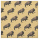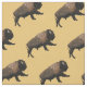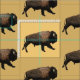 A digital painting of the American bison, or buffalo, superimposed on a background colour suggesting brain-tanned leather. You may choose another background colour. The bison (Bison bison), the largest land mammal in North America, is considered a keystone species: they once roamed the continent in great herds, and their grazing pressure helped shape the ecology of the Great Plains. Two subspecies or ecotypes have been described: the plains bison (Bison bison bison), smaller in size and with a more rounded hump, and the wood bison (Bison bison athabascae) – the larger of the two and having a taller, square hump. The bison is a relative newcomer to North America, having originated in Eurasia and migrated over the Bering Strait About 10,000 years ago it replaced the steppe bison (Bison priscus), a previous immigrant that was much larger. It is thought that the steppe bison became extinct due to a changing ecosystem and hunting pressure following the development of the Clovis point and related technology, and improved hunting skills. During this same period, other megafauna vanished and were replaced to some degree by immigrant Eurasian animals that were better adapted to predatory humans. The extant bison, technically a dwarf form, was one of these animals. There were once an estimated 20-30 million bison, also referred to as buffalo, roaming North America. Their range once roughly comprised a triangle between the Great Bear Lake in Canada's far northwest, south to the Mexican states of Durango and Nuevo León, and east along the western boundary of the Appalachian Mountains. The first thoroughfares of North America, except for the time-obliterated paths of mastodon or musko, were the traces made by bison and deer in seasonal migration and between feeding grounds and salt licks. Many of these routes, hammered by countless hoofs instinctively following watersheds and the crests of ridges in avoidance of lower places' summer muck and winter snowdrifts, were followed by Native Americans and were invaluable to explorers.. The term "buffalo" may be considered a misnomer for this animal, as it is only distantly related to either of the two "true buffalo," the Asian water buffalo and the African buffalo. However, "bison" is a Greek word meaning ox-like animal, while "buffalo" originated with the French fur trappers who called these massive beasts bœufs, meaning ox or bullock – so both names, "bison" and "buffalo," have a similar meaning. In reference to this animal, the term "buffalo," which dates to 1635, has a much longer history than the term "bison," which was first recorded in 1774.The American bison is more closely related to the wisent or European bison. Unregulated shooting of bison, which culminated in mass slaughters during the 1870s, reduced the population to 1,091 in 1889. Today, approximately 500,000 bison live across North America. Most are not pure bison but rather have been cross-bred with cattle in the past and are raised as livestock on ranches. Fewer than 30,000 bison are in conservation herds, and fewer than 5,000 are free-ranging and disease-free. Today bison are ecologically extinct throughout most of their historic range, except for a few national parks and other small wildlife areas. Yellowstone National Park has the largest population of free-roaming plains bison (about 4,000), and Wood Buffalo National Park has the largest population of free-roaming wood bison (about 10,000). A bison has a shaggy, long, dark brown winter coat, and a lighter weight, lighter brown summer coat. The winter coat is so thick and well insulated that snow can cover its backs without melting. Male bison are slightly larger than females. Plains bison typically weigh from 700 to 2,200 lbs. The heaviest wild bull ever recorded weighed 2,800 lbs. When raised in captivity and farmed for meat, the bison can grow unnaturally heavy and the largest semi-domestic bison weighed 3,800 lbs. The heads and forequarters are massive, and both sexes have short, curved horns that can grow up to 2 feet long, which they use in fighting for status within the herd and for defence. Bison are herbivores, grazing on the grasses and sedges of the North American prairies. Their daily schedule involves two-hour periods of grazing, resting and cud chewing, then moving to a new location to graze again. This regular motion ensures that bison seldom overgraze an area. Bison often rub and roll on the ground creating shallow, saucer-like depressions called wallows. Bison roll in wallow, wet or dry, covering themselves with dust or mud. Past explanations and current hypotheses suggested for wallowing behaviour include grooming behaviour associated with shedding, male-male interaction (typically rutting behaviour), social behaviour for group cohesion, play behaviour, relief from skin irritation due to biting insects; reduction of ticks and lice; and thermoregulation. Wallows were once a common feature of the plains. In winter, bison can dig through deep snow with their heads to reach the vegetation below. Bison have poor eyesight, but have acute hearing and an excellent sense of smell. Bison can reach speeds of up to 35 mph. Bison have a life expectancy of approximately 15 years in the wild and up to 25 years in captivity. Bison mate in late spring and summer in more open plain areas. During fall and winter, bison tend to gather in more wooded areas. During this time, bison partake in horning behaviours. They will rub their horns against trees, young saplings and even telephone poles. Aromatic trees like cedars and pine seem to be preferred. Horning appears to be associated with insect defence as it occurs most often in the fall when the insect population is at its highest. Cedar and pines emit an aroma after bison horn them and this seems to be used as a deterrent for insects. While often secure from predation due to their size and strength, in some areas, bison are regularly predated by wolves. Wolf predation typically peaks 
