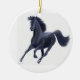 Original fine art design of a galloping black Thoroughbred horse by illustrator/designer Carolyn McFann of Two Purring Cats Studio.