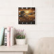 Galloping Horse Through Golden Fields at Sunset Square Wall Clock