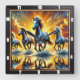 Galloping Horses Fire Square Wall Clock