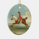 Galloping Racehorse and mounted Jockey in Red (oil Ceramic Ornament