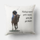 Galloping Thoroughbred Horse And Rider, Throw Pillow. Digital Art. Spirited Thoroughbred and his rider in morning workout. Show how proud you are of the horse work you do. Wording, "Riding never gets easier, you just get better". Edit the wording to your liking, or remove it entirely. Pair it with the matching fleece blanket.