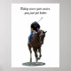 Galloping Thoroughbred Horse And Rider, Poster. Digital Art. Spirited Thoroughbred and his rider in morning workout. Show how proud you are of the horse work you do. Wording, "Riding never gets easier, you just get better". Edit the wording to your liking, or remove it entirely.